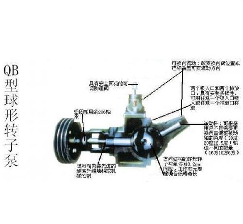 QB球型輸送泵吸收國內外技術研制而成的。該泵結構_,球形轉子部件是萬向聯(lián)軸節(jié)原理的應用。在球形殼內,球形轉子裝在驅動軸上,進入球形轉子的液體可直接排入管道進行輸送。