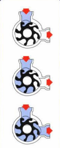 ② 當(dāng)撓性葉片旋轉(zhuǎn)時(shí),液體由泵腔吸入部被帶入排出部。